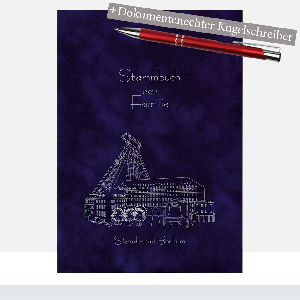 Unsere Stammbücher sind auf die Urkunden vom Standesamt Bochum abgestimmt und bewahren zugleich Ihre wertvolle Eheurkunde, Geburtsurkunden und weitere wichtige Dokumente sicher und würdevoll auf: